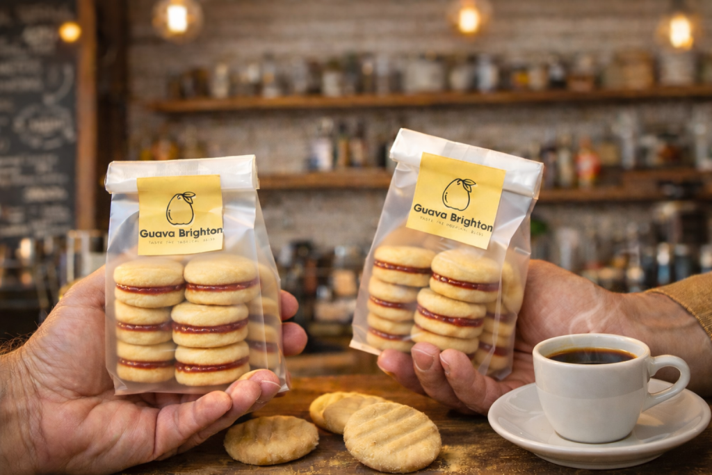 Guava Brighton biscuits are handmade, vegan, and crafted with fresh organic ingredients. Made from a cherished family recipe passed down for over 100 years, every biscuit delivers an authentic tropical flavor and a taste of tradition in every bite.
